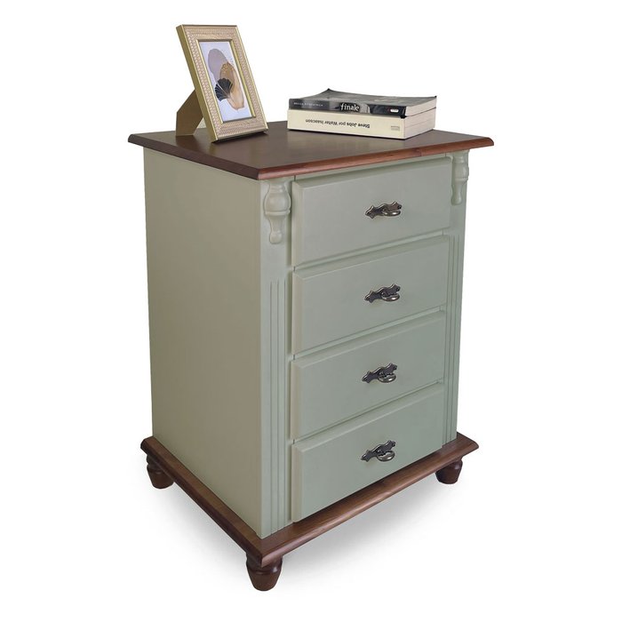 Mesa de Cabeceira 4 Gavetas Retrô Pés Bola Madeira Florença - Laca Verde Chá/imbuia
