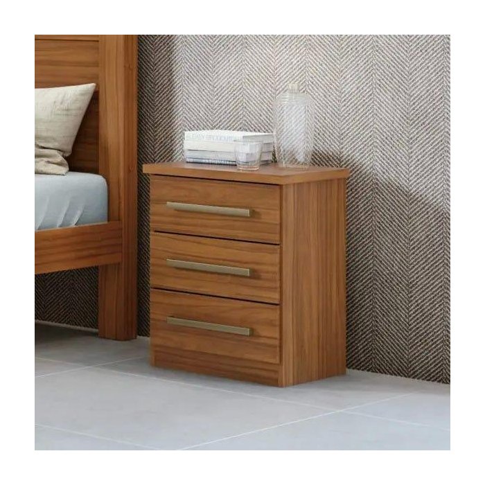 Mesa de Cabeceira Baião 3 Gavetas - Rovere Naturale