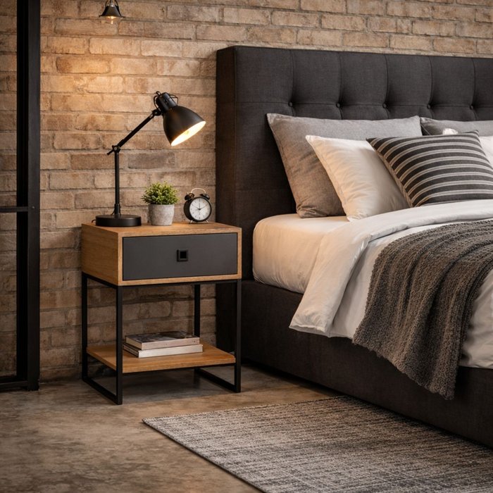 A Mesa de Cabeceira Estilo Industrial é a escolha certa para quem busca funcionalidade, design moderno e acabamento profissional no quarto. Produzida com estrutura metálica resistente e tampo em MDP de alta qualidade, ela entrega estabilidade, durabilidade e visual contemporâneo.