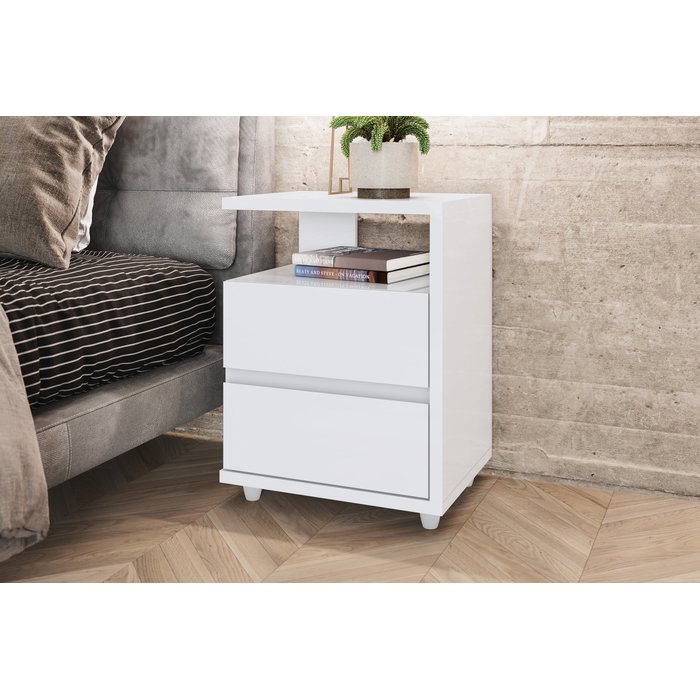 Mesa de Cabeceira Campeche 2 Gavetas Branco