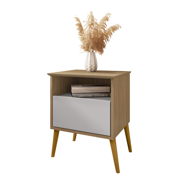 Mesa de Cabeceira Cancun Decorativa Quarto Criado Moderno C/ Gaveta e Prateleira Nicho Cinamomo c/ OFF-Cinza