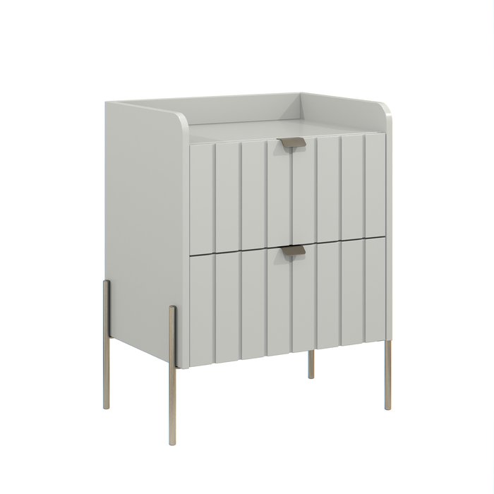 Mesa de Cabeceira Canto Off White para Quarto Estilo Classico Moriah 45cm Pes e Puxadores Champagne