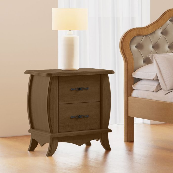 Mesa de Cabeceira Clássica Império 2 Gavetas em Madeira Maciça Castanho