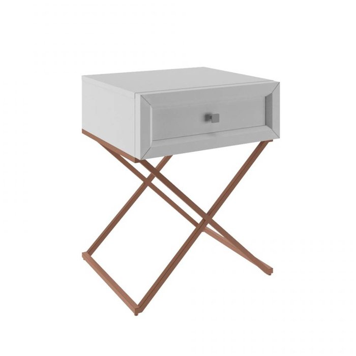 Mesa de Cabeceira Cotia 45Cm Baixa 1 Gaveta Branco com Cobre