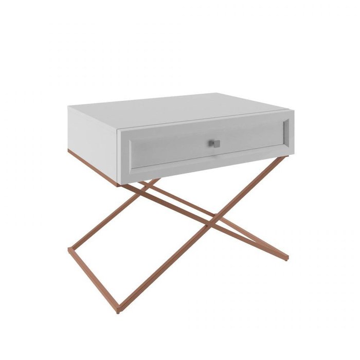 Mesa de Cabeceira Cotia 70Cm Baixa 1 Gaveta Branco com Cobre