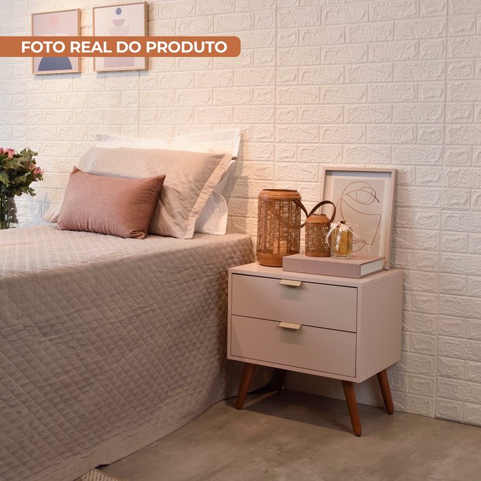 Mesa de Cabeceira Demadero com 2 Gavetas - Off White/NaturalA Mesa de Cabeceira Demadero tem um design clean e muito moderno. Perfeita para se encaixar ao lado da cama, ela conta com 2 gavetas para colocar itens importantes, podendo apoiar uma luminária e livro de cabeceira. Além disso, é perfeita para colocar o celular e carregar a bateria durante a noite. Estrutura é com MDP, fornecendo melhor resistência à empenamentos, impactos e maior estabilidade. Para um ambiente moderno é necessário escolher móveis arrojados, únicos, que irão impressionar logo à primeira vista.MDPPainel de madeira formado por partículas de madeira de média densidade, é também o mais consumido no mundo. É produzido em prensas contínuas de última geração, sendo um dos produtos mais tecnológicos e econômicos para produção de móveis de linhas retas ou que precisam receber pinturas e revestimentos de qualquer material. Apresenta excelente resultado em móveis para dormitórios, escritórios, cozinhas, painéis para decoração, prateleiras, tampos e base superior/inferior. Com o manuseio correto e dispositivos de montagem, pode ser montado e desmontado quantas vezes for necessário.Garantia:3 meses para defeito de fábricaCaracterísticas - Off White/ Natural