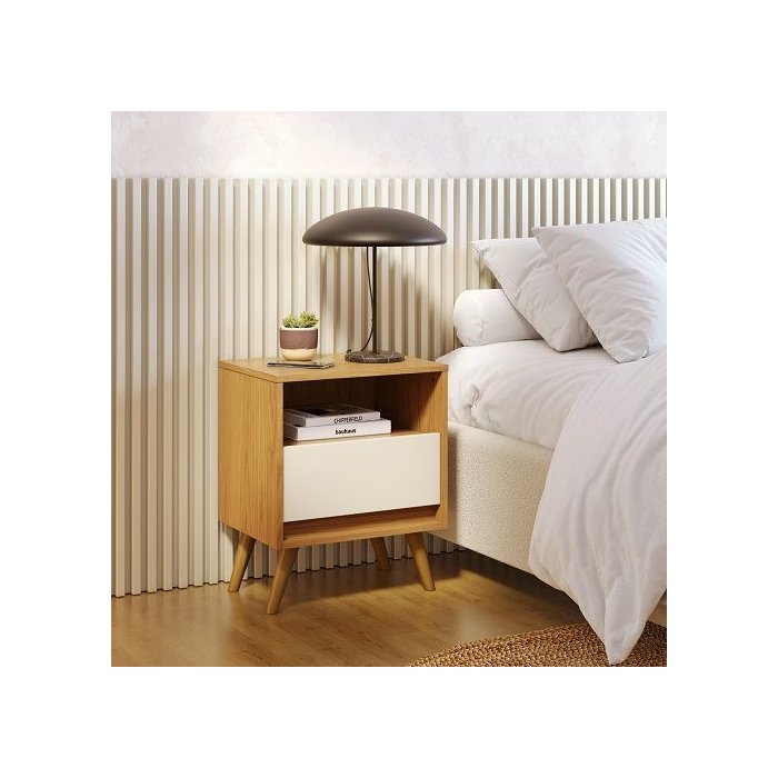 Mesa de Cabeceira Eccos Nature/off White - Potenza Móveis