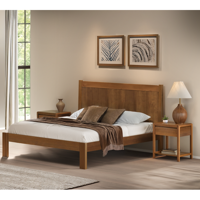 Mesa de Cabeceira em Madeira Maciça 1 Gaveta Modena Amendoa