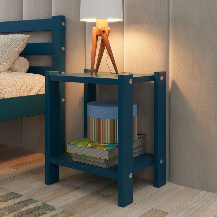 Mesa de Cabeceira em Madeira Maciça Linna Azul