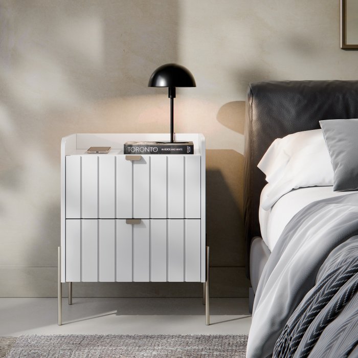Mesa de Cabeceira em Madeira Mdf Branca Moriah 45cm Base Champagne