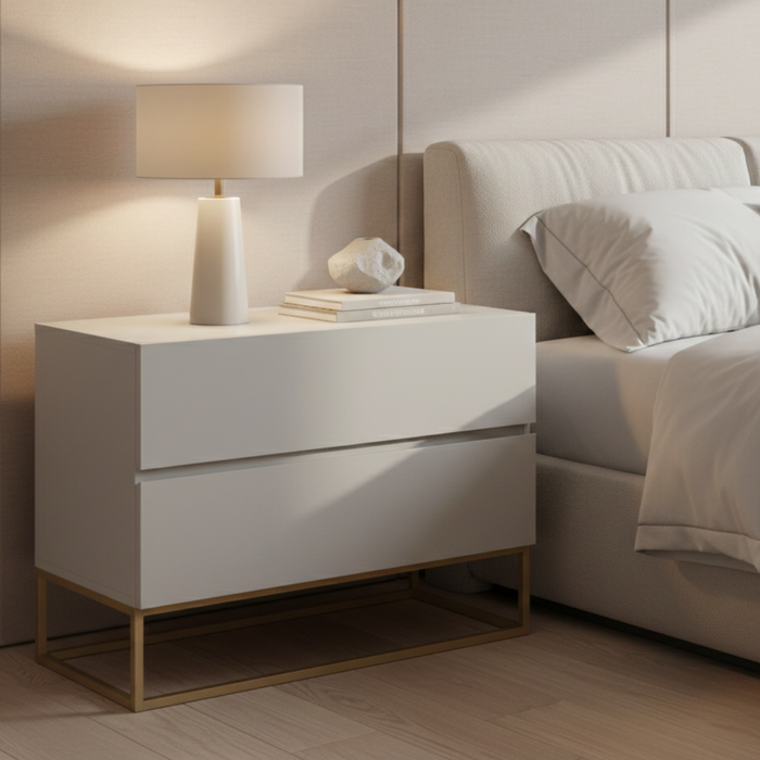 Mesa de Cabeceira Eros 60cm Base Dourado Mdf/mdp Mesinha Apoio Quarto Escritório Moderno:off White