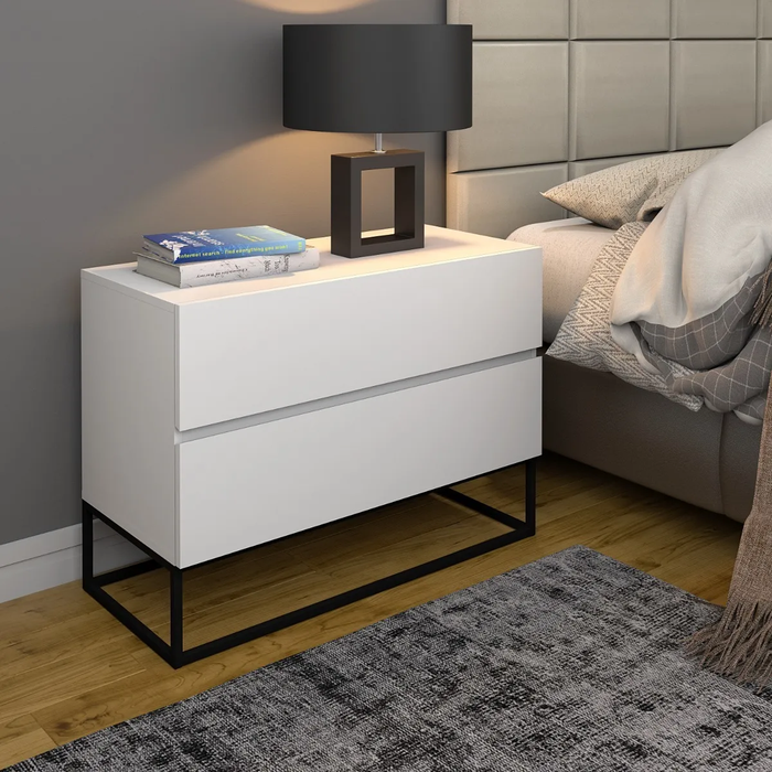 A Mesa de Cabeceira Eros é ideal para quem deseja deixar o quarto moderno, organizado e funcional. Com design industrial contemporâneo, ela combina facilmente com diversos estilos de decoração, trazendo um visual urbano e sofisticado ao ambiente.
