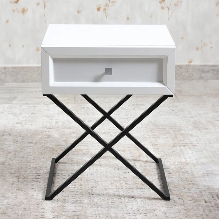 Mesa de Cabeceira Eva 0,45 Baixa Branco/metal Preto