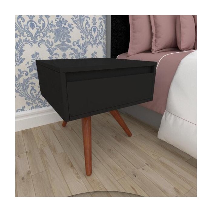 Mesa de Cabeceira Gaveta Preto 3 Pés Inc Madeira Mogno Mpcp09 Preto