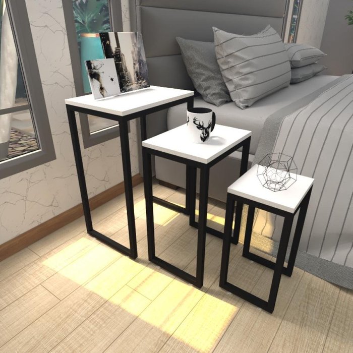 Mesa de Cabeceira Industrial Branca Off White Canto Quarto Cabeceira Mesinha Cabeçeira Cabiceira Branco
