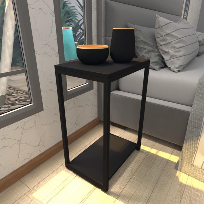 Mesa de Cabeceira Industrial Preta Mdf Canto Quarto Mesas de Cabeceira Mesinha Cabeçeira Cabiceira