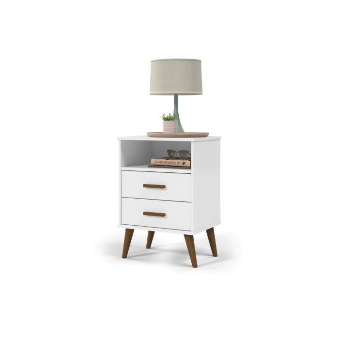 Mesa de Cabeceira Itália Pés Retrô 2 Gav e Nicho Quarto Pequeno Branco BRANCO
