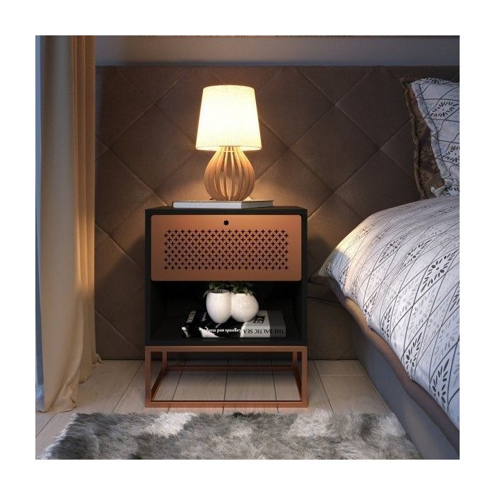 Mesa de Cabeceira Lateral Revoir Moderna Madeira Metal Esplanada Preto e Cobre Preto e Cobre