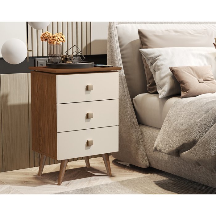 Mesa De Cabeceira Liv 3 G Maria Móveis - Freijó/Off White