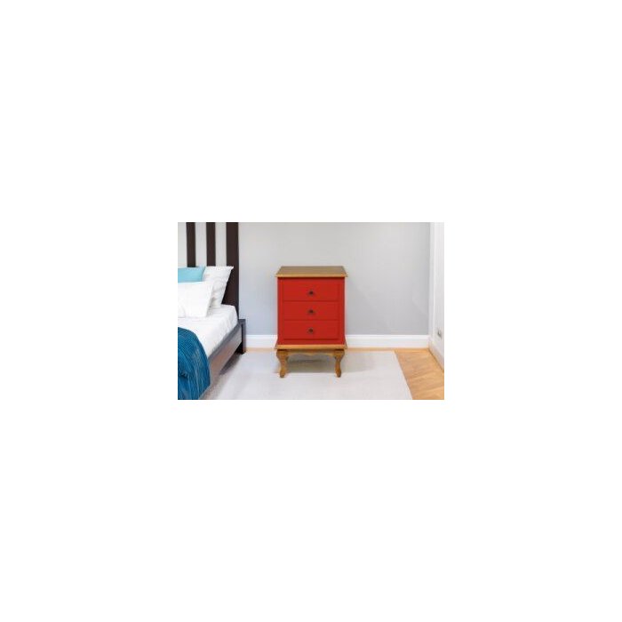Mesa de Cabeceira Luis Xv 3 Gavetas - Vermelho vermelho