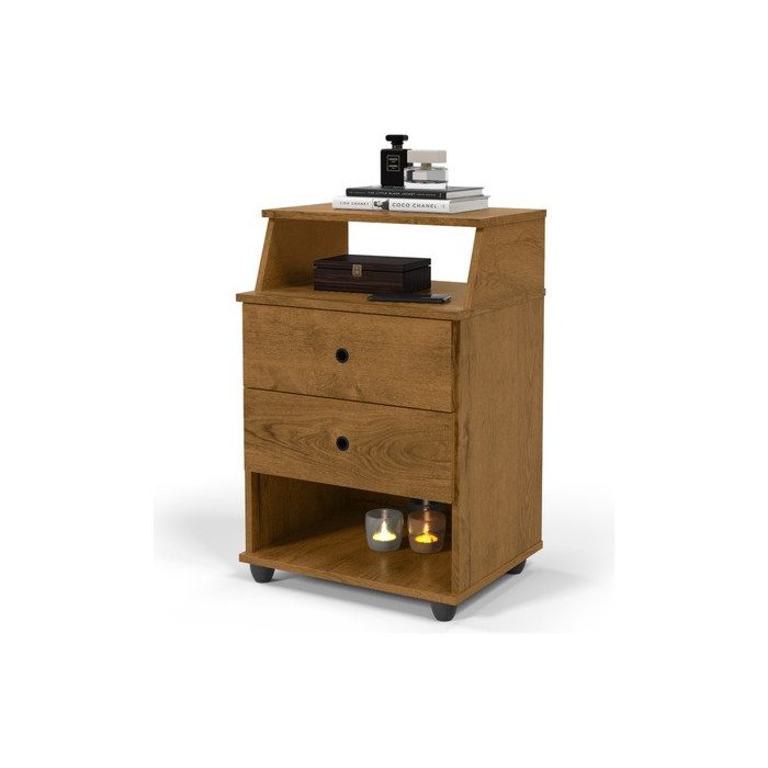 Mesa de Cabeceira Luxo 2 Gavetas-nl Moveis - Freijó