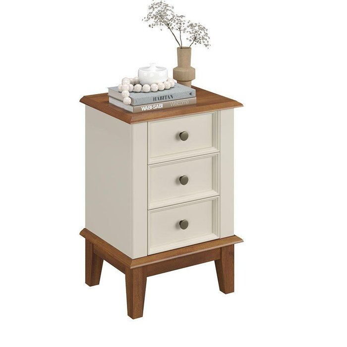 Mesa de Cabeceira Madeira Maciça - Off White