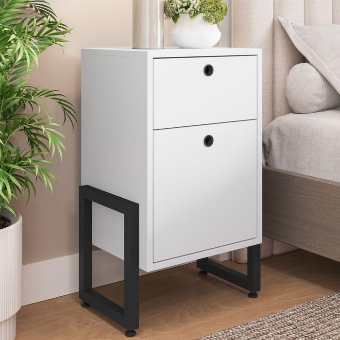 Mesa de Cabeceira Marta com Gavetas Branco Preto Branco