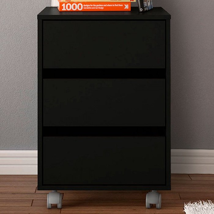 Mesa de Cabeceira Mauá 3 Gavetas com Rodízios Preto - Politorno