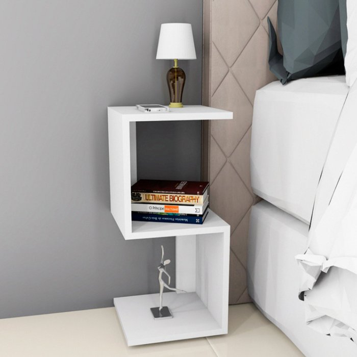 Mesa de Cabeceira Mesinha Nicho em Z ou S Aparador de Canto Sala Quarto Branco