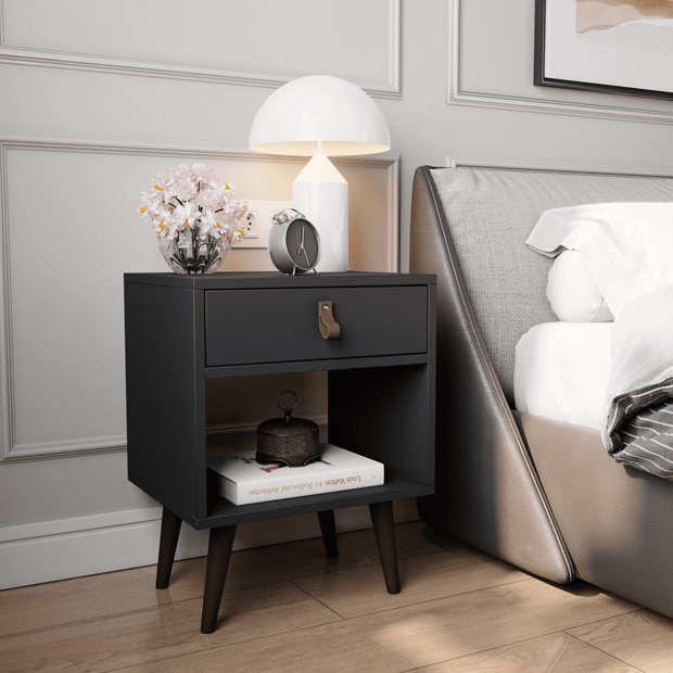 A Mesa de Cabeceira Ravenna conta com design compacto e sofisticado, com puxador em couro, se adaptando a diversos estilos de quarto agregando muita delicadeza.. Conta com uma ampla gaveta para acomodar diversos itens do dia a dia que precisamos manter a sempre a mão, e uma prateleira e nicho para decorar da maneira que preferir. Seu tampo ergonômico permite dispor relógio, celular, livro e etc.
