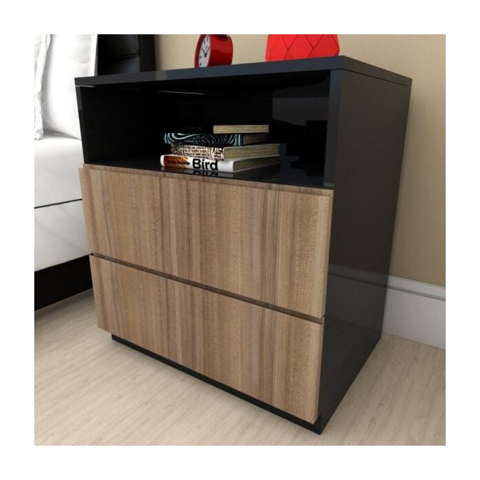 Mesa de cabeceira moderna amadeirado escuro com preto