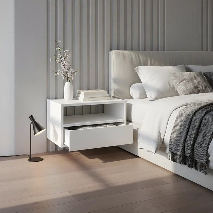 Mesa de Cabeceira Nicho com Gaveteiro Suspenso de Parede Off White Laca Off White