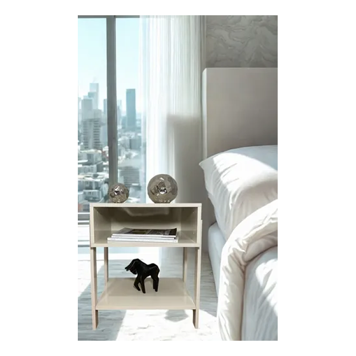 Mesa de Cabeceira Off-white com Nicho e Prateleira Inferior Off-White
