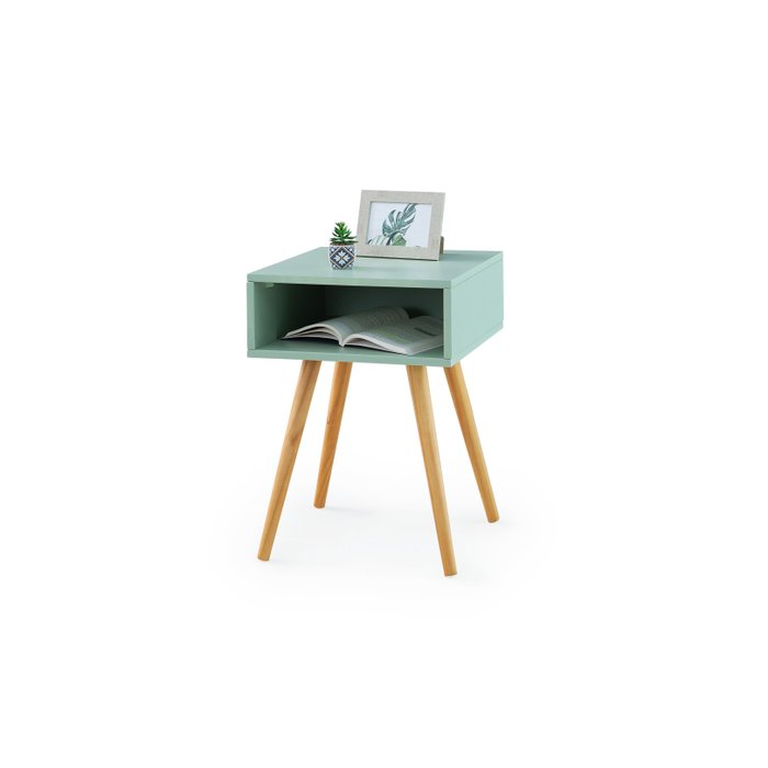 Mesa de Cabeceira Olívia Mdf Laqueado Verde Oliva Pé Palito Retrô - Organizze Móveis