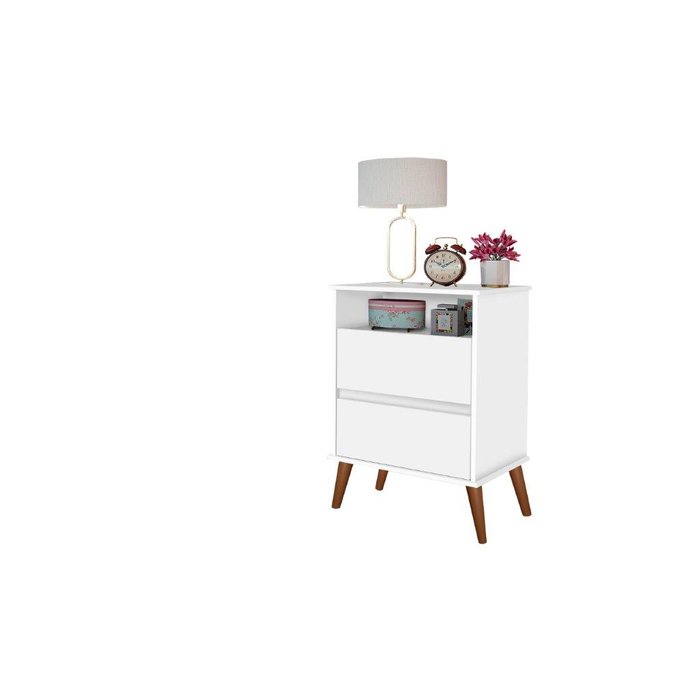 Mesa de Cabeceira On Estilo Retrô Cor Branco
