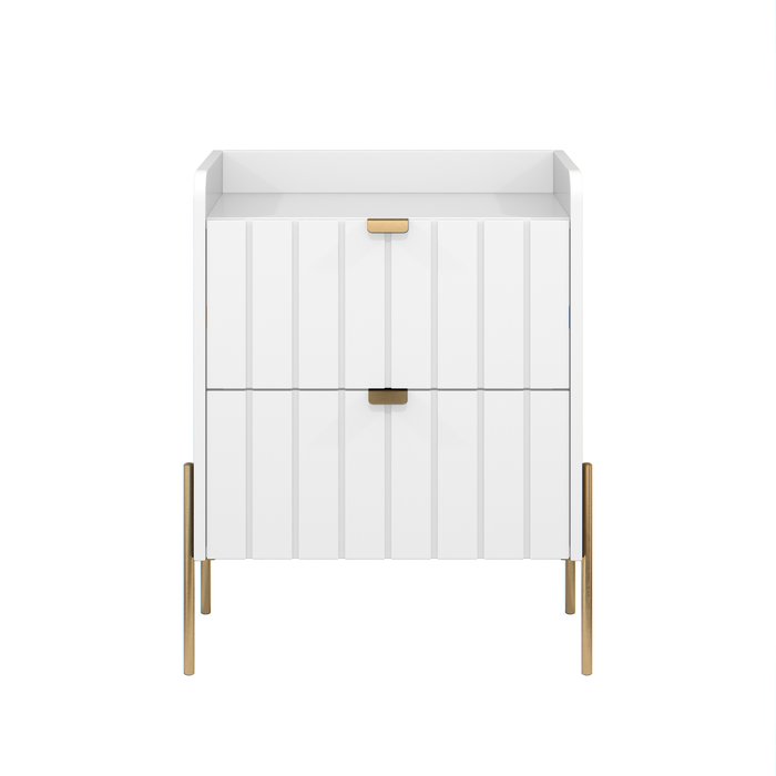 Mesa de Cabeceira para Quarto Pequeno Moriah 45cm Branco com Dourado Branco