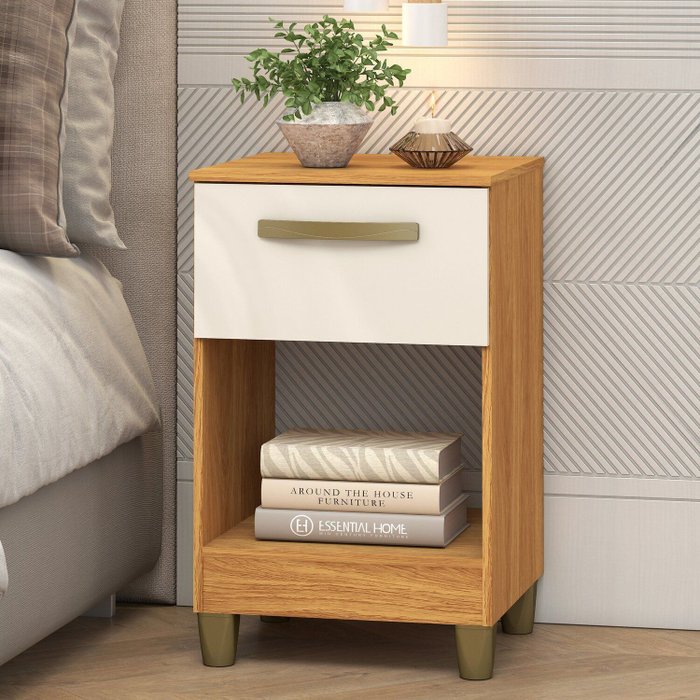Mesa de Cabeceira Prada 1 Gaveta 62,2x38,5x37,5 Cm Cinamomo/Off White