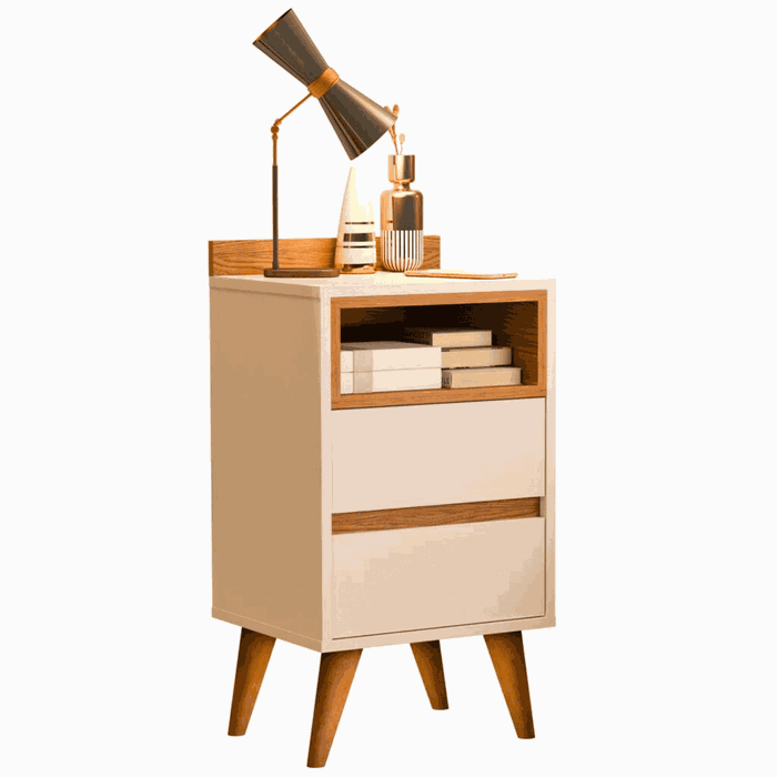 Mesa de Cabeceira Quarto Apoio Lateral Cama Box Casal Estilo Decoração Retrô Álamo 2 Gavetas - Offwh
