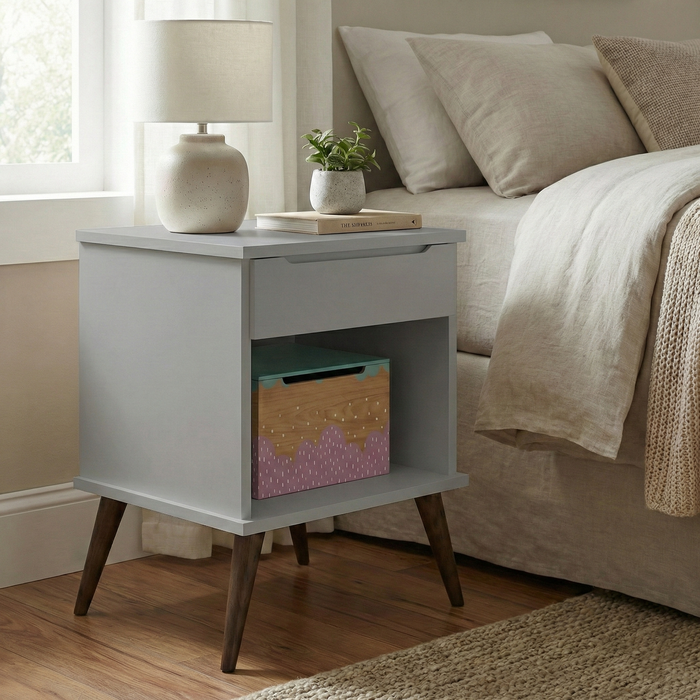 Mesa de Cabeceira Retrô 1 Gaveta e Nicho Melinda Cinza Cinza