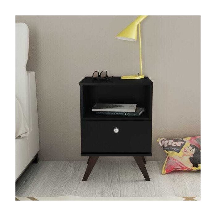 Mesa de Cabeceira Retrô 1 Gaveta Preto Lilies Móveis Preto