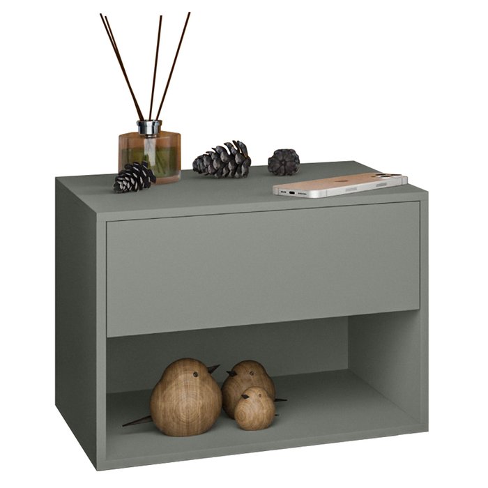 Mesa de Cabeceira Suspensa Fixa na Parede 1 Gaveta Corrediça Telescópica 1 Nicho - Lh Móveis Cinza