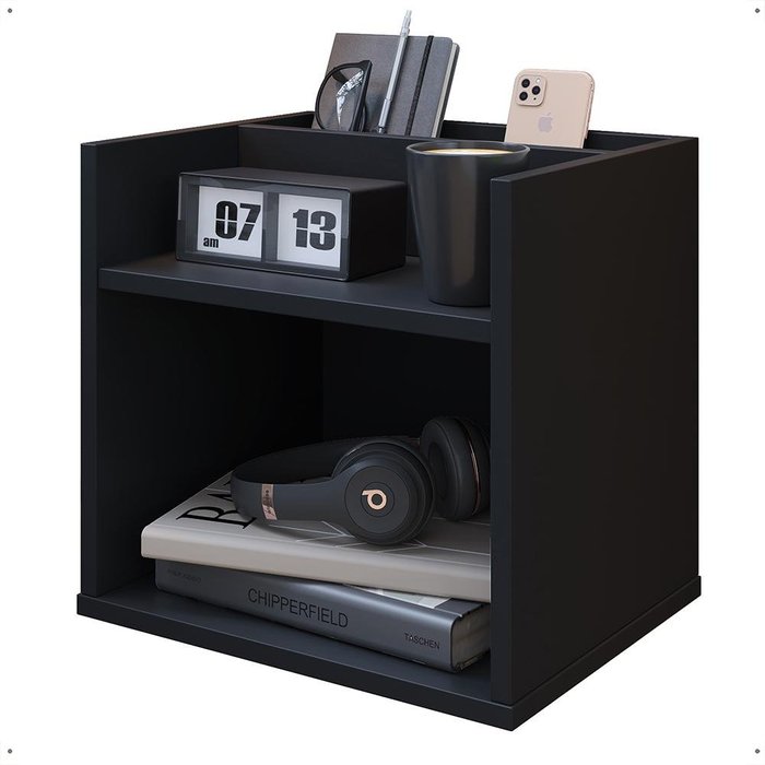 Mesa de Cabeceira Suspensa Madri Divisória Nicho Mesinha Decorativa Quarto Casal Solteiro - Preto
