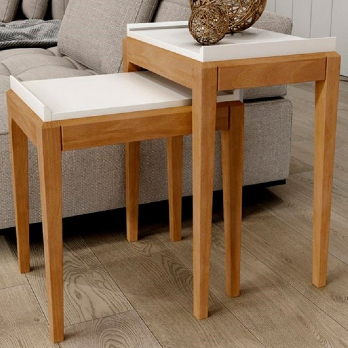 Mesa de Canto Kit 2 Peças Milão Off White/Freijó - Finestra Móveis