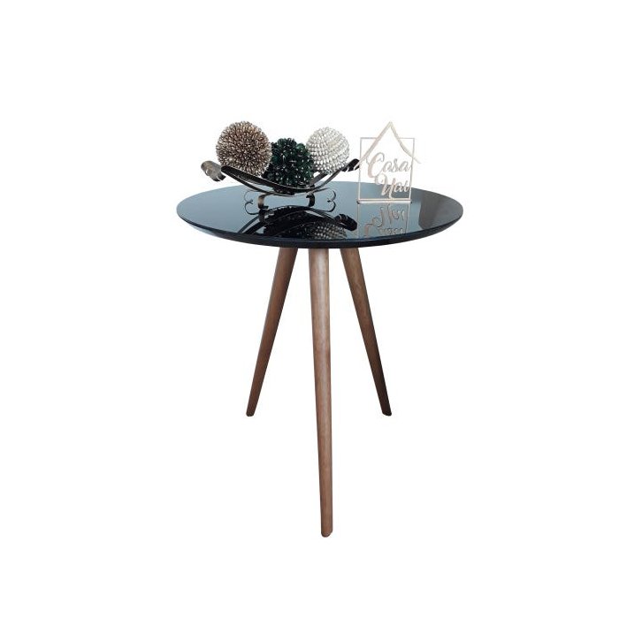 Mesa De Canto Lateral Pé Palito Preta com Vidro 60 cm Diâmetro 70 cm Altura Casa Uai