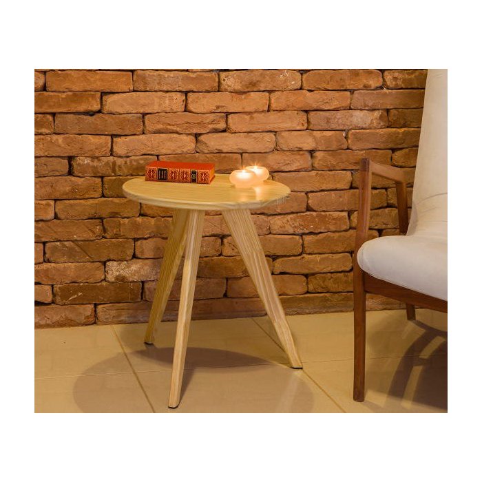 Mesa de Canto Lateral Pinus Pé Palito Slim com Tampo 40cm