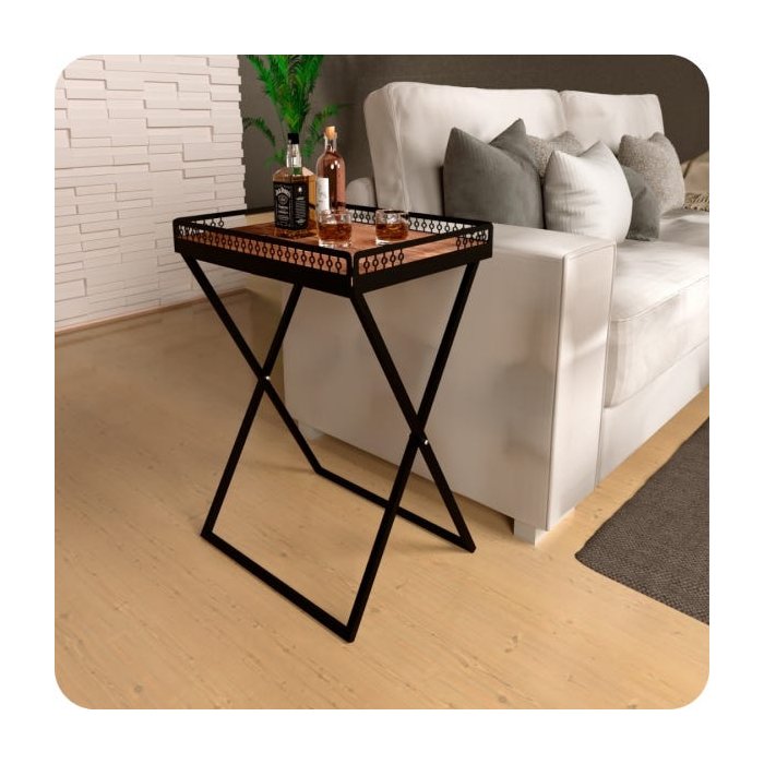 Mesa de Canto para Sala Dobrável com Bandeja Preto Fosco
