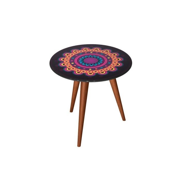 Mesa de Canto Retrô Pé Palito - Mandala - Preto - e E Móveis