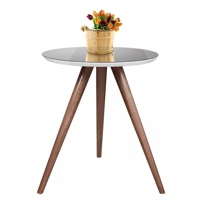 Mesa de Canto Tampo 50 Cm Cor Off White com Espelho Pé Palito Altura 60 Cm