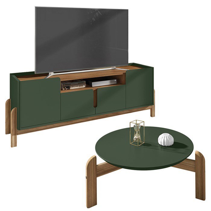 Mesa De Centro 006008 E Rack Para Sala 190cm 011081 Verde Oliva Cedro DCASA