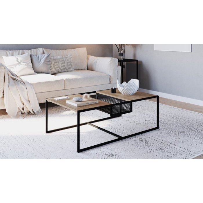 Mesa de Centro 100cm York - Trama Aço Expandido Industrial Artesano | Vermont/Preto Preto